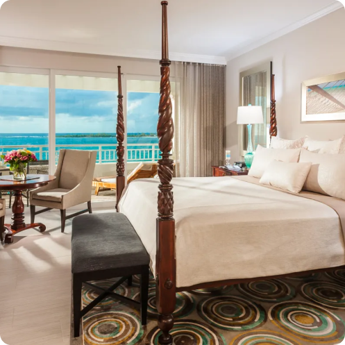 The All Inclusive 24h Adults Only Hotel Riu Palace Paradise Island opens all year round and lies directly on a spectacular 4 km stretch of white, sandy beach, next to Atlantis, the biggest casino in the Caribbean. Riu Palace is the most elegant category in the RIU hotel chain, with hotels that meet the highest standards in terms of luxury, excellence and sophistication, creating a unique experience. The location is ideal due to its proximity to Downtown Nassau (3.3 km) and Lynden Pindling International Airport (NAS) (20 km) and invites you to explore the area. The hotel has 379 comfortably furnished rooms with free WiFi and offers many amenities. Relax in our spa or get in shape at the gym. 1 outdoor pool and 1 infinity pool with swim up bar. Daytime and evening entertainment, beach volleyball court and group fitness activities. For lovers of gastronomy, live cooking stations and themed buffets at our main restaurant, as well as Japanese, Fusion and Steakhouse specialty restaurants; 3 bars, jerk station and pâtisserie & ice cream parlor.